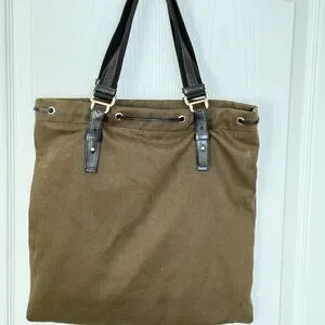 $1295 Authentic YSL Yves Saint Laurent Kahala Made in ITALY Green Canvas Totes