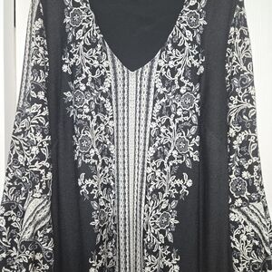 Elegant black and white women's dress with intricate patterns. Perfect for any occasion.
