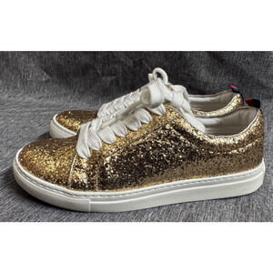 Boden Gold Glitter "Flat Form" Sneakers Lace-Up size 38