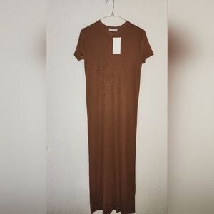 THE HANGER Womens Ribbed Rust Brown Short Sleeve Maxi Dress Size: Small NWT