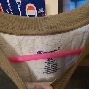 Here is a super comfortable brand new with tags, Champion Performance short sleeved tee shirt. Black logo, with vibrant camo. men's 2xl