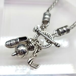 DESCRIPTION: The perfect ⛳️ golfing accessory for when you hit the links! NWOTS! Toggle closure a 3 charms- golf shoe, club, and ball on a tee!