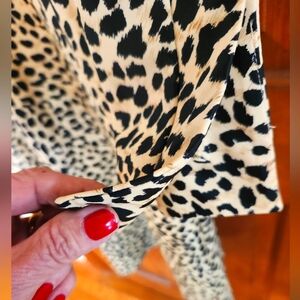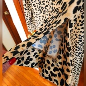 Stylish leopard print dress perfect for any occasion. Features a comfortable fit and eye-catching design. Fashionable slit detail on sleeves and hem. So comfortable!