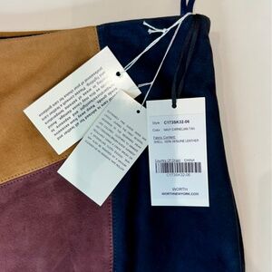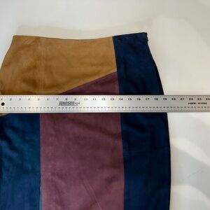 Worth New York, colorblock suede skirt navy/maroon/tan. Size 6, front kick. NEW!