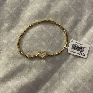 ivory mother of pearl kendra scott ari heart gold stretch bracelet brand nwt