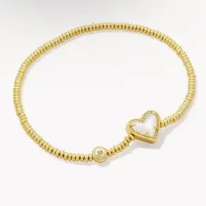 ivory mother of pearl kendra scott ari heart gold stretch bracelet