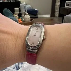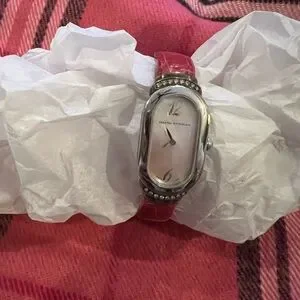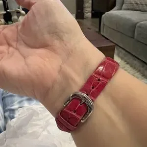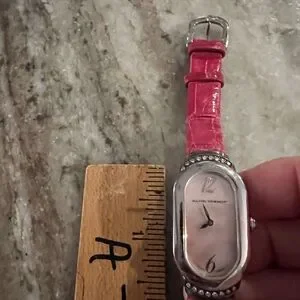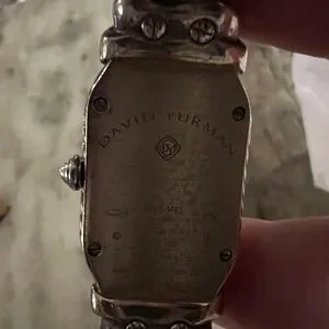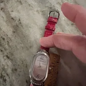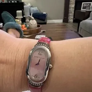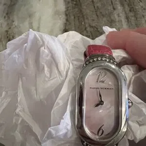 David Yurman stainless steel, Madison collection. Women’s watch pink leather band non smoking/non pet home. Diamonds on both top and bottom of face. Opalescent color face. Really pretty. Pre-owned. I am original owner! Pink leather band has some wear at the third hole, where I clasped it most.