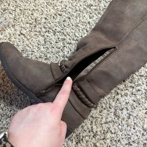 Rampage Women’s Brown Tall Boots with Braid and Buckle Detail Half Zip Size 7