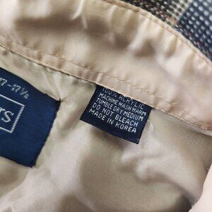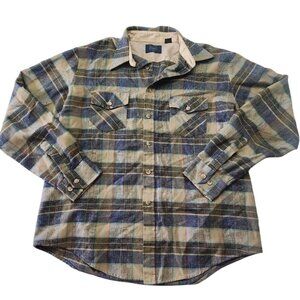 Vintage Sears Flannel Shirt Men Extra Large XL 17 Blue Plaid Long Sleeve Grunge