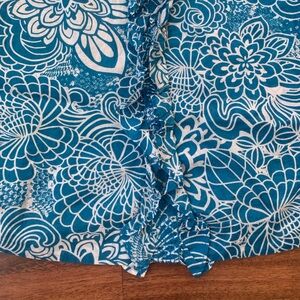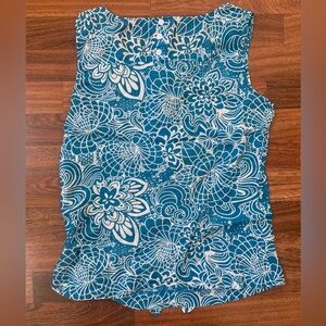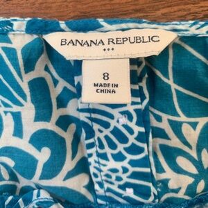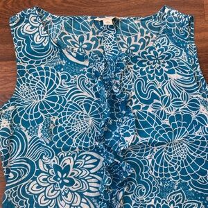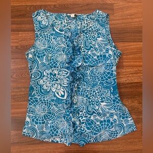 Banana Republic Ruffled Tank Top Women’s 8 Blue White Floral 100% Cotton Blouse