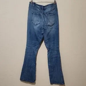 Stylish flare and wide leg design. Classic blue denim. Perfect for casual wear.