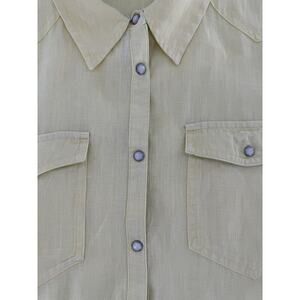 Sundance Pearl Snap Shirt Size M 100% Linen Yellow Western Rodeo Cowgirl