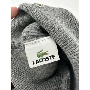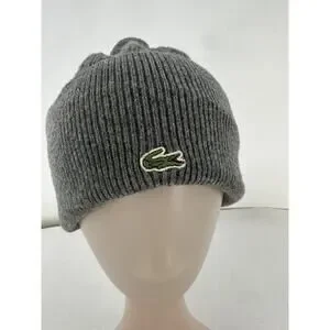 Lacoste Vtg Beanie Hat Pom Cable Knit Ribbed Grey One Size Japan