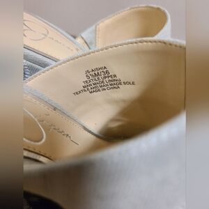 Elevate your style with these chic patchwork denim wedge sandals by Jessica Simpaon. Perfect for any casual outing....