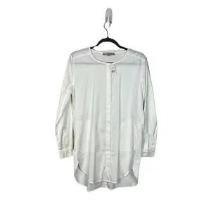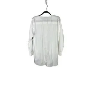 Ann Taylor Loft Tunic Top Long Sleeve Button Up Pockets White Size Medium