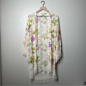 Show Me Your Mumu Metzler Kimono in Flower Press Floral Pattern Embroidered Trim