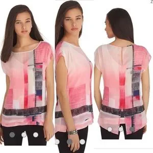 White House Black Market Short Sleeve Colorblock Double Layer Top