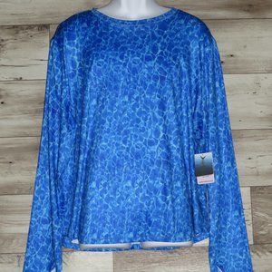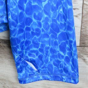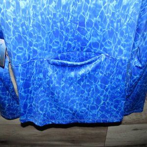 NWT~ Excellent Condition! 88% Polyester/12% Spandex. Handsome Aqua Blue Splash Shirt, UPF 50+, Breathable, Moisture Wicking, Lower Back Zipper Closure