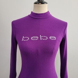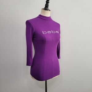Bebe Y2K Purple Mock Neck Embelished logo top. excellent condition.