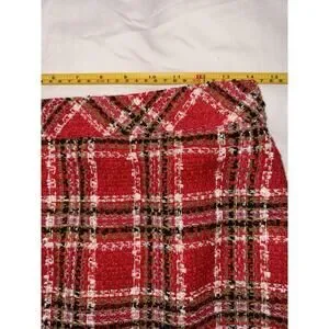 Upgrade your wardrobe with this stylish Ann Taylor Plaid Fringe Tweed Skirt in a classic red, black, and white check pattern. Designed with high-quality tweed fabric and a chic fringe hem, this skirt is perfect for work, holiday parties, or casual outings.