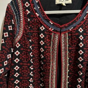 Sheryl Crow Printed "Be Myself" Beaded Hero Jacket Size 1X in very good condition. This jacket is beautiful! Open front with a hook & eye clasp at the top.
