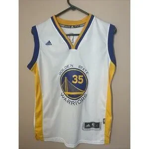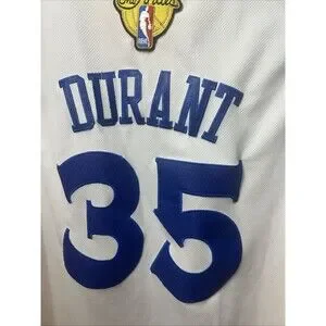 Step up your game with the Adidas Kevin Durant #35 Golden State Warriors The Finals Swingman Jersey. This authentic piece of sports apparel is designed to give you the same look and feel as KD himself, complete with the iconic Warriors colors and Durant's legendary jersey number 35. Tailored to fit a men's size large, it's both comfortable and stylish, making it perfect for basketball practices, games, or even just a casual day out.
