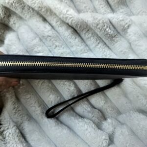 Stylish brown wristlet featuring a New York City design. Perfect for carrying essentials.