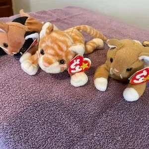 Vintage beanie baby cats In great condition 6 total “Amber, Nip, Chip, Pounce, Stripes, Zip”