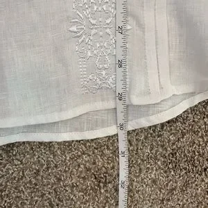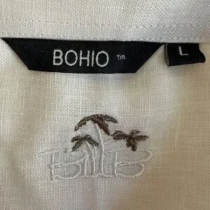 Bohio Men’s White Linen Fancy Guayabera Style Short Slv Shirt Embroidered Large