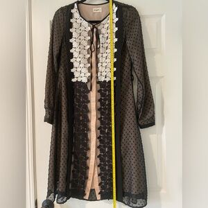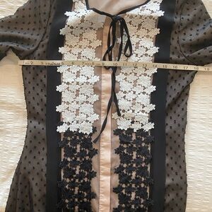 Luxe & Arrow Long Button Down Black Feminine Classy Dress Lace/Polka Dots Size S