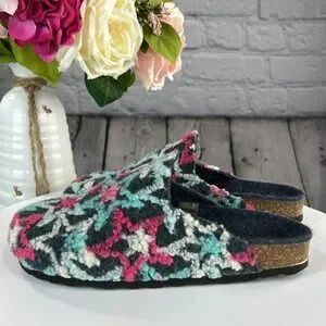 MANDEL Made in Italy Blue White & Pink Stars Slip On Clogs Mules Flats