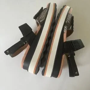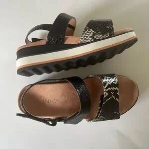 Vionic 'Brielle Ray' SZ 6.5 Snake Embossed Leather Comfort Sandal Black