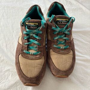 NWOT L. L. Bean Katahdin trail suede mesh Shoes - Beige brown turquoise SZ 11 M