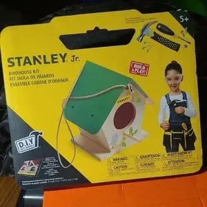 Stanley Jr. birdhouse kit includes paints and brushes. Perfect for DIY projects.