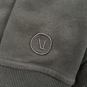 GUC. Minor signs of wash wear throughout but lots of life left. Small bleach stain on inside back of collar (shown in pictures). Charcoal color.