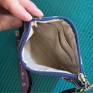 Blue and Black Polka Dot Coach Wristlet