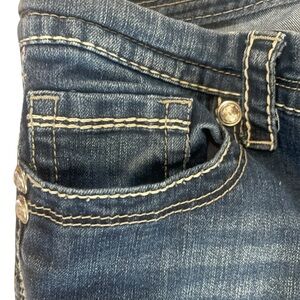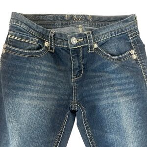 Seven 7 Women's Blue Coastal Cowgirl Bling Accents Boot Cut Big Stitch Jeans 28”