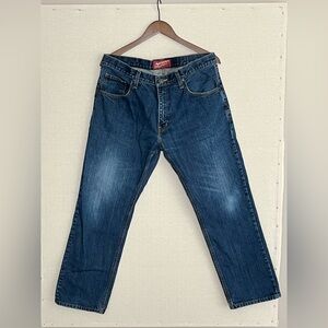 Arizona Men’s Slim Straight Jeans. 34x29 Great condition but has some wear at the bottom hem of pant leg.