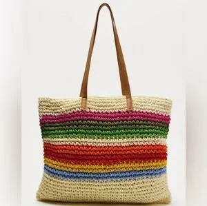 Brighten your day with this colorful striped tote bag. Perfect for any occasion, this bag features vibrant hues and a spacious design.