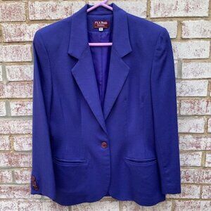 Jos. A. Bank Woman's Purple 100% Wool 1 Button Blazer W/ Shoulder Pads Size 8