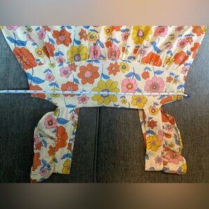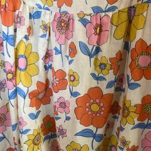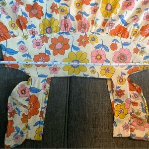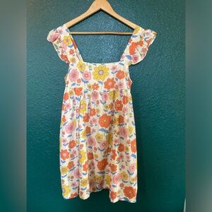 Charming floral dress with vibrant colors. Features ruffle straps and a sleeveless design. Perfect for a sunny day. GUC