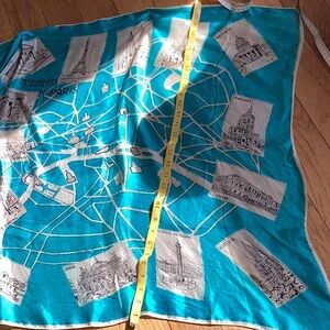 PARIS SILK SCARF Beautiful TURQUOISE & CREAM VINTAGE FIND