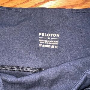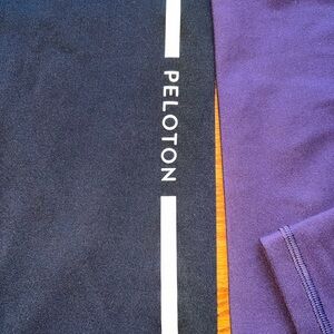 Comfortable and stylish Peloton kids leggings in black and purple. Perfect for active days.