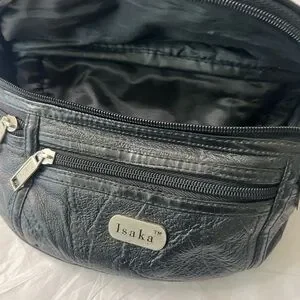 Stylish and durable, the black bag is perfect for everyday use. Its sleek design and high-quality material make it a must-have accessory. Vintage 1990’s. Adjustable waist strap.