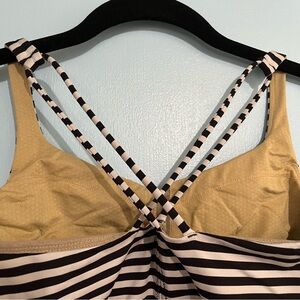 Stylish black and white striped tank top. Perfect for casual wear.Lululemon size 6. Good preowned condition. Shelf bra no padding.