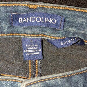 A great pair of Bandolino blue denim jeans, size 6 with plenty of stretch. Straight leg fit.