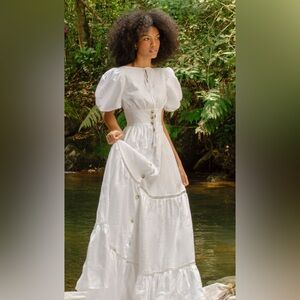 ANDRES OTALORA Exclusive Canoa Button-Front Tiered Linen Maxi Dress (Size 4)