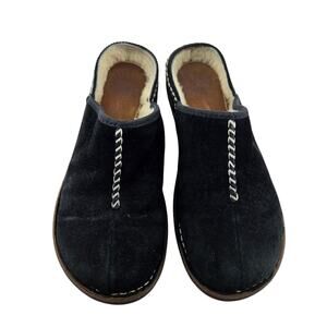 UGG Slip On Mules Clogs Womens 9 Black Suede Shearling Embroidered Bohemian Boho