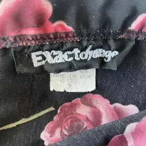 Vintage Exact Change Size 7 Black floral midi / maxi skirt with pink roses