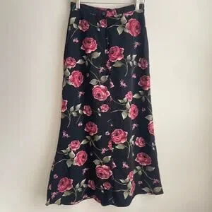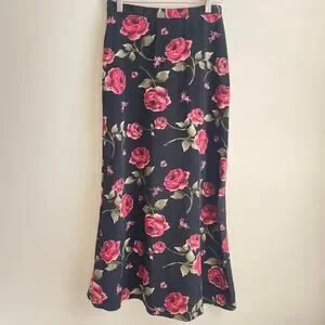 Vintage Maxi / Midi Skirt Size 7 Y2k Black Floral Roses